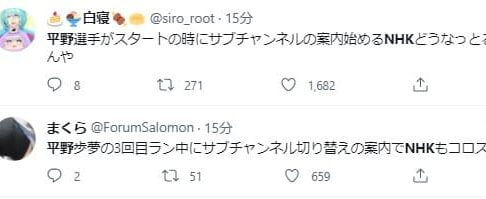 NHK,ハーフパイプ決勝平野歩夢の3回目競技中にサブチャンネル変更案内で炎上